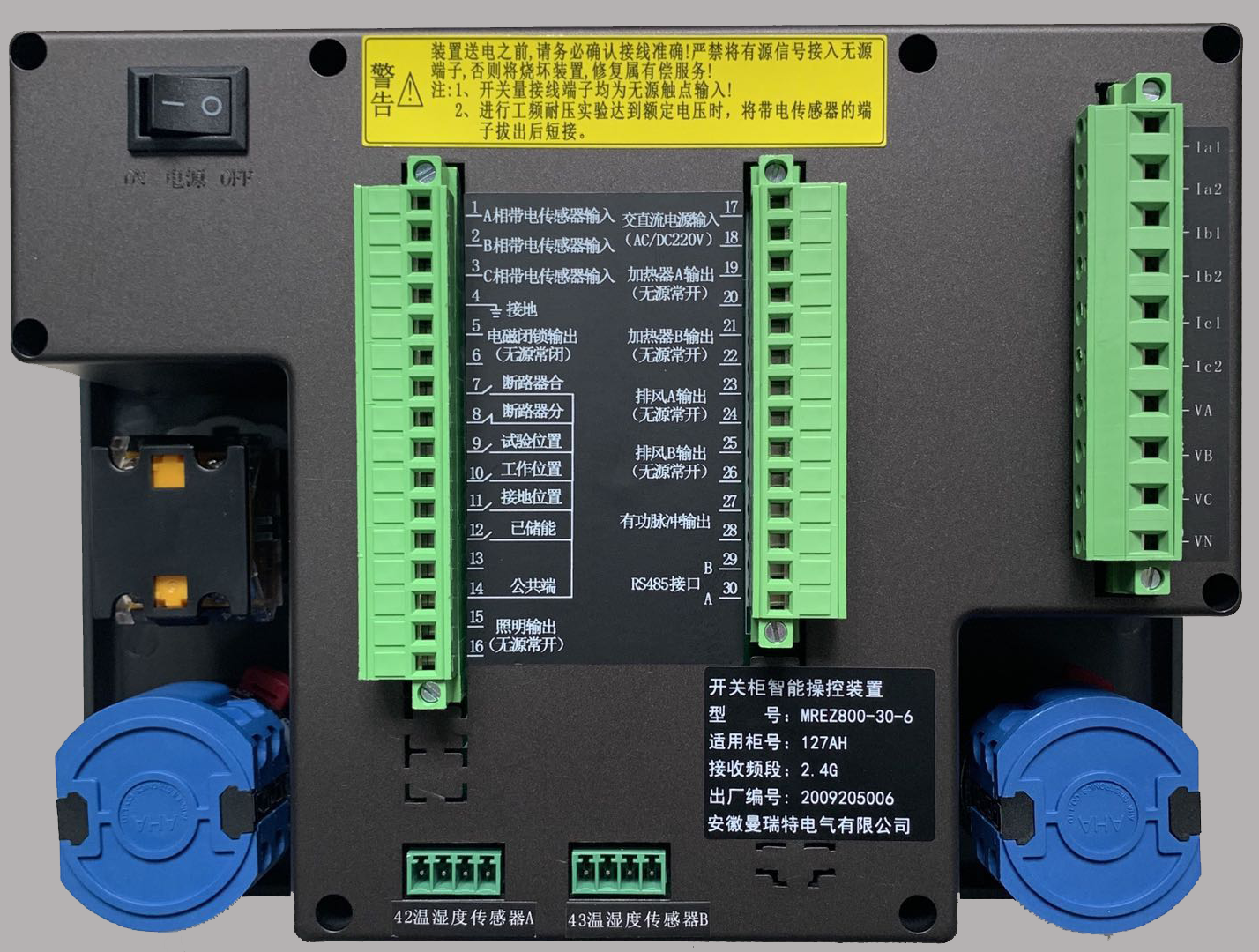 MREZ800系列開關(guān)柜智能操控裝置用于3~35kv戶內(nèi)中置柜、手車柜、固定柜、環(huán)網(wǎng)柜等多種開關(guān)柜。具有一次模擬圖、帶電顯示、分合閘狀態(tài)指示、接地開關(guān)指示、儲(chǔ)能指示、手車位置指示、語(yǔ)音防誤提示、溫濕度數(shù)值顯示、RS485遠(yuǎn)程通訊接口等多項(xiàng)功能。產(chǎn)品采用微處理器控制,內(nèi)部元件大部分分為優(yōu)質(zhì)進(jìn)口工業(yè)級(jí)品牌,具有穩(wěn)定可靠、長(zhǎng)壽命、抗干擾性強(qiáng)等優(yōu)點(diǎn)。該產(chǎn)品較傳統(tǒng)的模擬顯示標(biāo)牌具有顯示直觀操作方便等優(yōu)點(diǎn)。